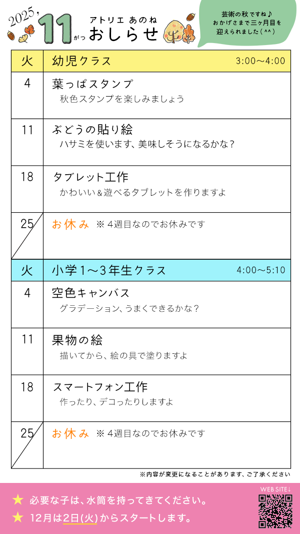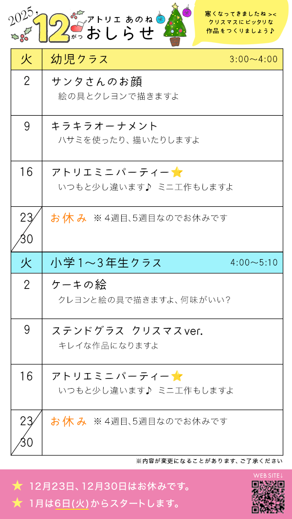 12月のスケジュールをアップしました |
